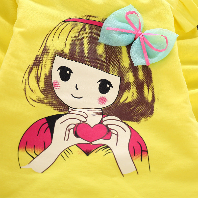 Autumn Round Neck Infant Lotus Leaf Shoulder Long Sleeve Toddler Stitching Skirt Pants Set