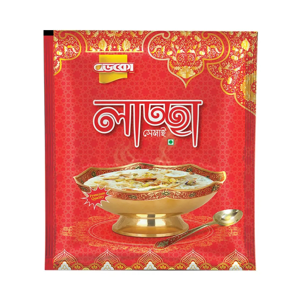 উৎপত্তি: বাংলাদেশ পণ্যের নাম: Dekko লাচ্ছা শেমাই বর্ণনা:এই সূক্ষ্ম ও নাজুক লাচ্ছা শেমাইটি বাংলার ঐতিহ্যবাহী মিষ্টান্নের স্বাদ তুলে ধরে। উৎসবের...