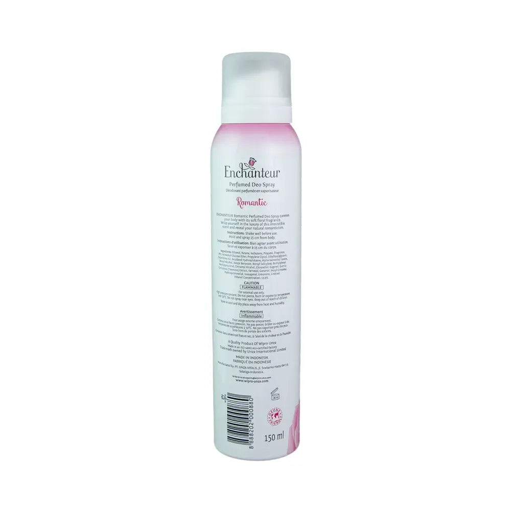 Enchanteur Romantic Perfumed Deo Spray-এ গোলাপ, সাদা জেসমিন, ভায়োলেট এবং ভ্যানিলার স্বতন্ত্র সুবাস মিশ্রিত। এর বিশেষ ফর্মুলা ত্বকের জন্য কোমল এবং দীর্ঘস্থায়ী সতেজতা প্রদান করে।