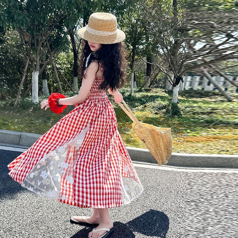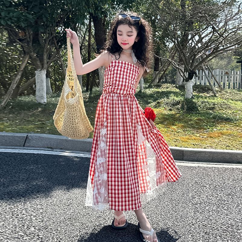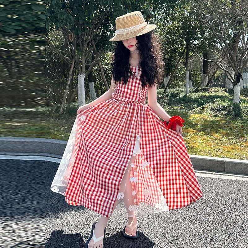 Color: red plaid non-slip dress