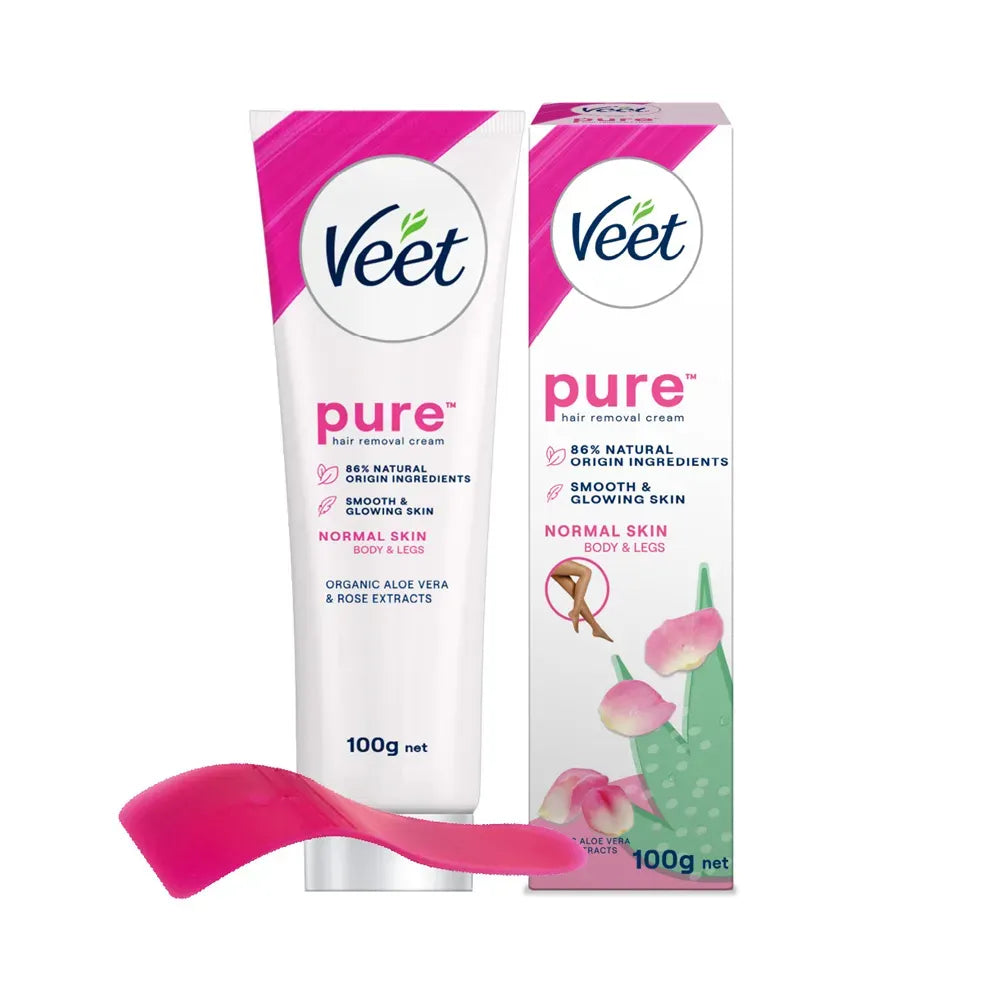 Veet Hair Removal Cream for Normal Skin লোটাস মিল্ক দিয়ে তৈরি, যা সেলুনের মতো মসৃণ চামড়া প্রদান করে এবং ৫-in-1 ত্বকের সুবিধা দেয়: দৃশ্যমানভাবে উজ্জ্বল করে, ২৪ ঘণ্টা পর্যন্ত আর্দ্রতা বজায় রাখে, এক্সফোলিয়েশন করে, মসৃণ করে এবং মনোরম জাসমিন সুগন্ধ ছেড়ে দেয়। Veet ক্রিম সাধারণ, সংবেদনশীল ও শুষ্ক ত্বকের জন্যও উপলব্ধ।